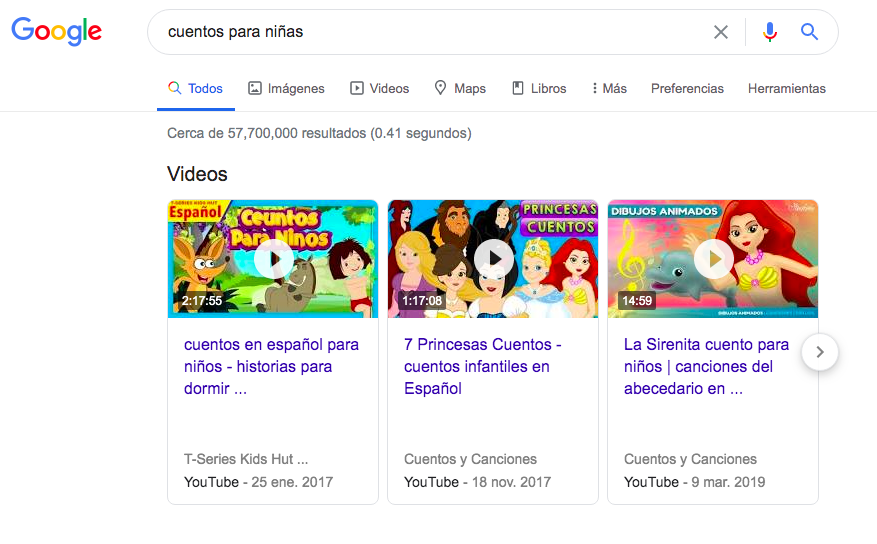 Podemos ver esto ilustrado con dos simples búsquedas en la página «Google» sobre «cuentos para niños» y «cuentos para niñas»